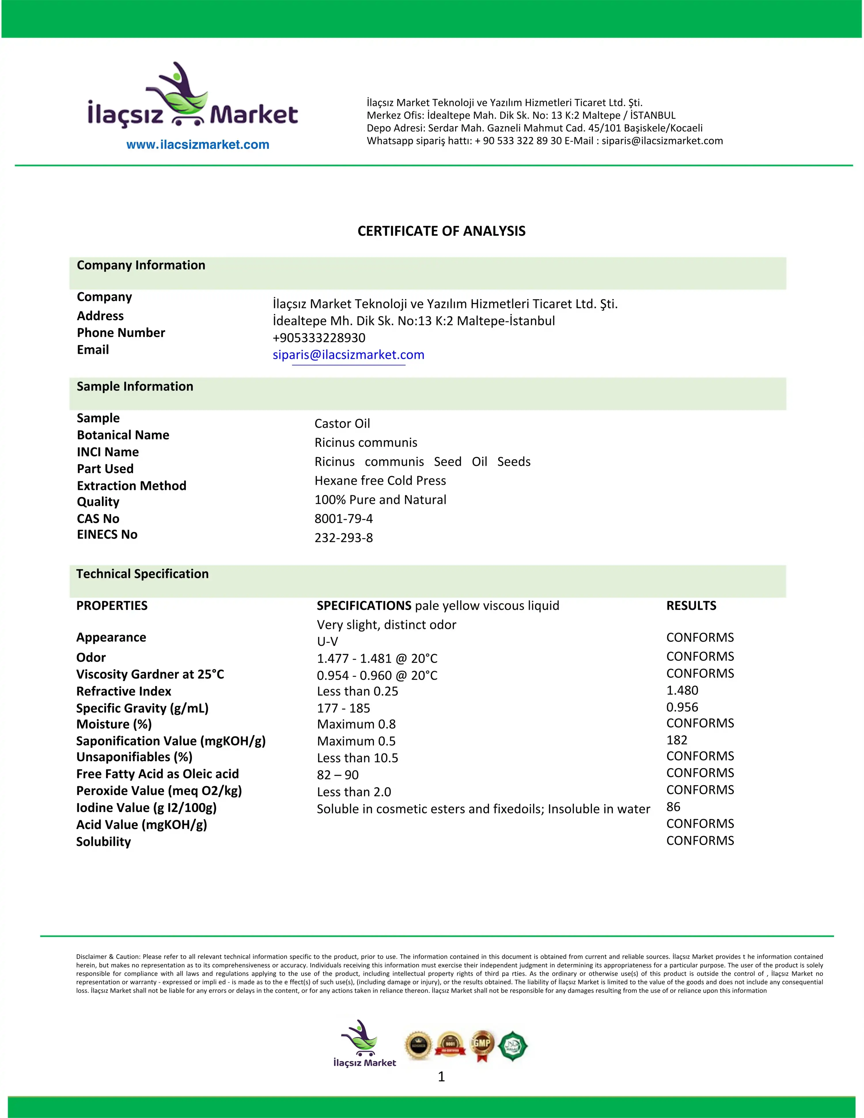 Hint yağı Analizlerini linkten inceleyebilirsiniz. Analizler