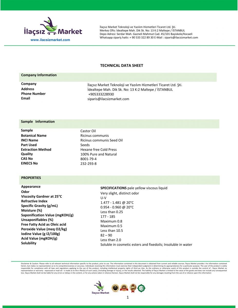 Hint yağı, Ricinus communis bitkisinin tohumlarından hekzansız soğuk pres yöntemiyle elde edilen doğal ve yoğun yapılı bir bitkisel yağdır. İlaçsız Market tarafından yapılan analiz sonuçları, ürünün hem saflığını hem de doğallığını bilimsel verilerle ortaya koymaktadır.
